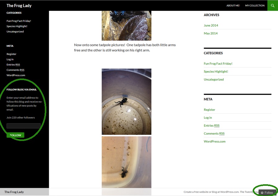 Lastly, I have been getting lots of questions about how to follow along with the blog. The easiest way for you would be for you to “follow” the blog and you will receive an email every time there is a new blog post. There are two places you can click to do this, as shown in the picture below.