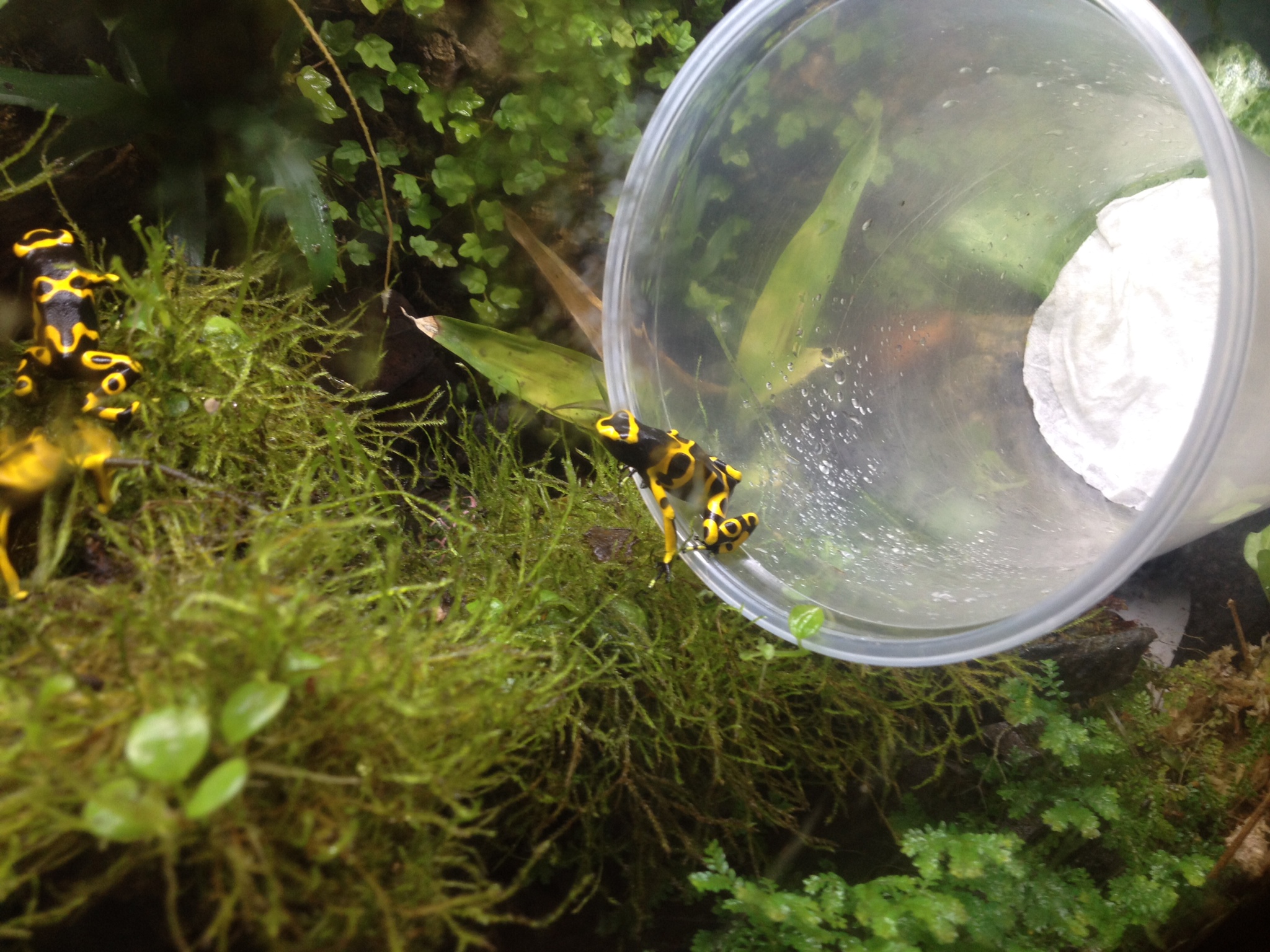 In other news, my imitator’s were very loud last night. It has been almost 1 year but the shy male imitator finally found his voice and he was calling all night long as the other male chased him all over the tank. At one point it sounded like they were playing Marco Polo around the tank. They also decided they were not scared of the camera at all, so here is a very close picture of one of the males.