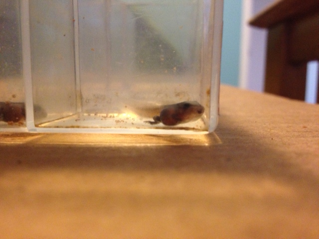 Quick Tadpole Update August 29, 2014 Posted in Tadpoles, tarapotos Here is a quick tadpole update for the Friday before a long weekend. They are each doing well and should be popping their front legs shortly. Sorry about the messy water, but I didn’t have time to clean it out this morning before taking some photos. Share this: Click to share on X (Opens in new window) X Click to share on Facebook (Opens in new window) Facebook Click to share on Reddit (Opens in new window) Reddit Click to email a link to a friend (Opens in new window) Email More Click to share on Pinterest (Opens in new window) Pinterest Like Loading... Related