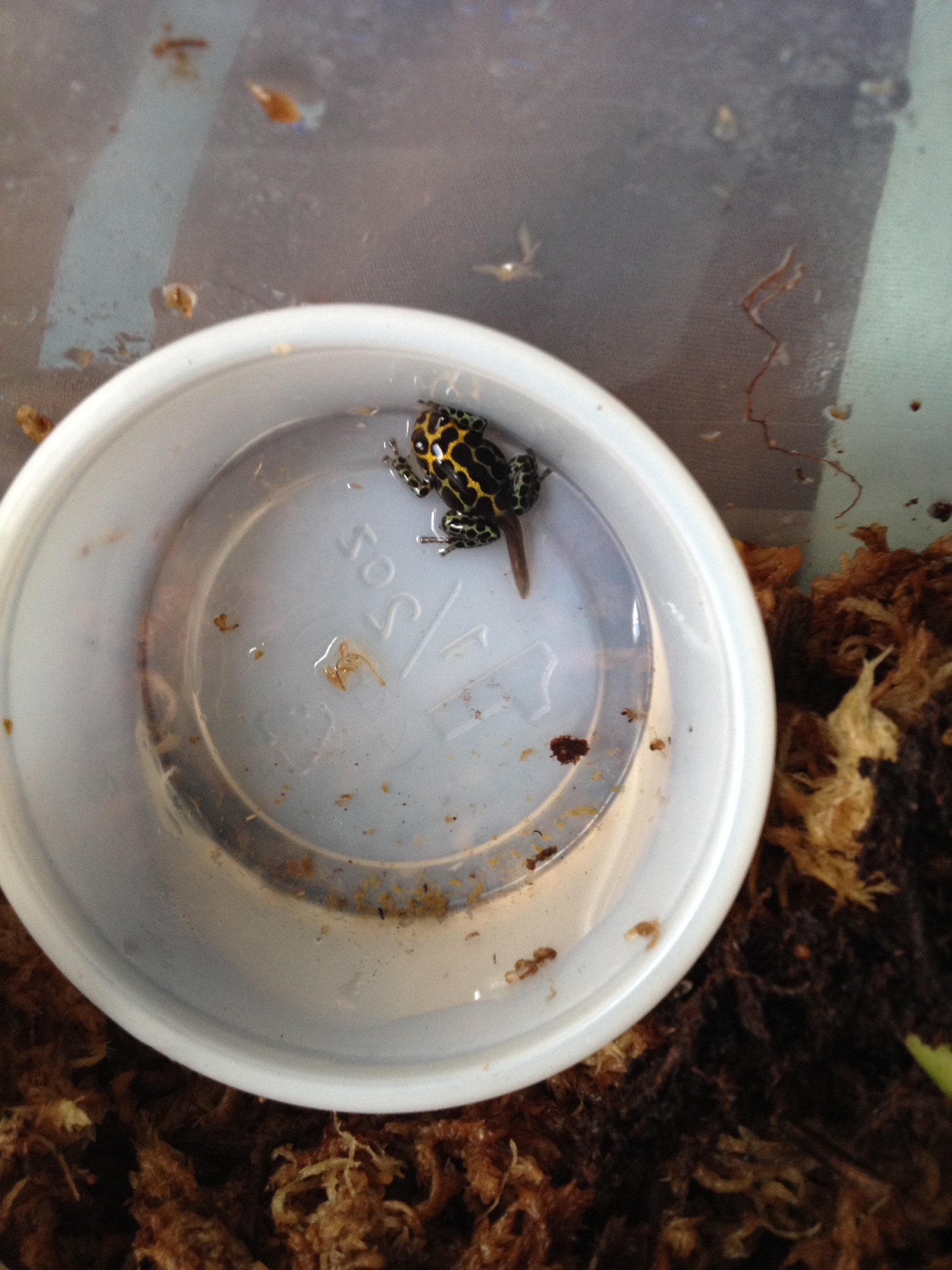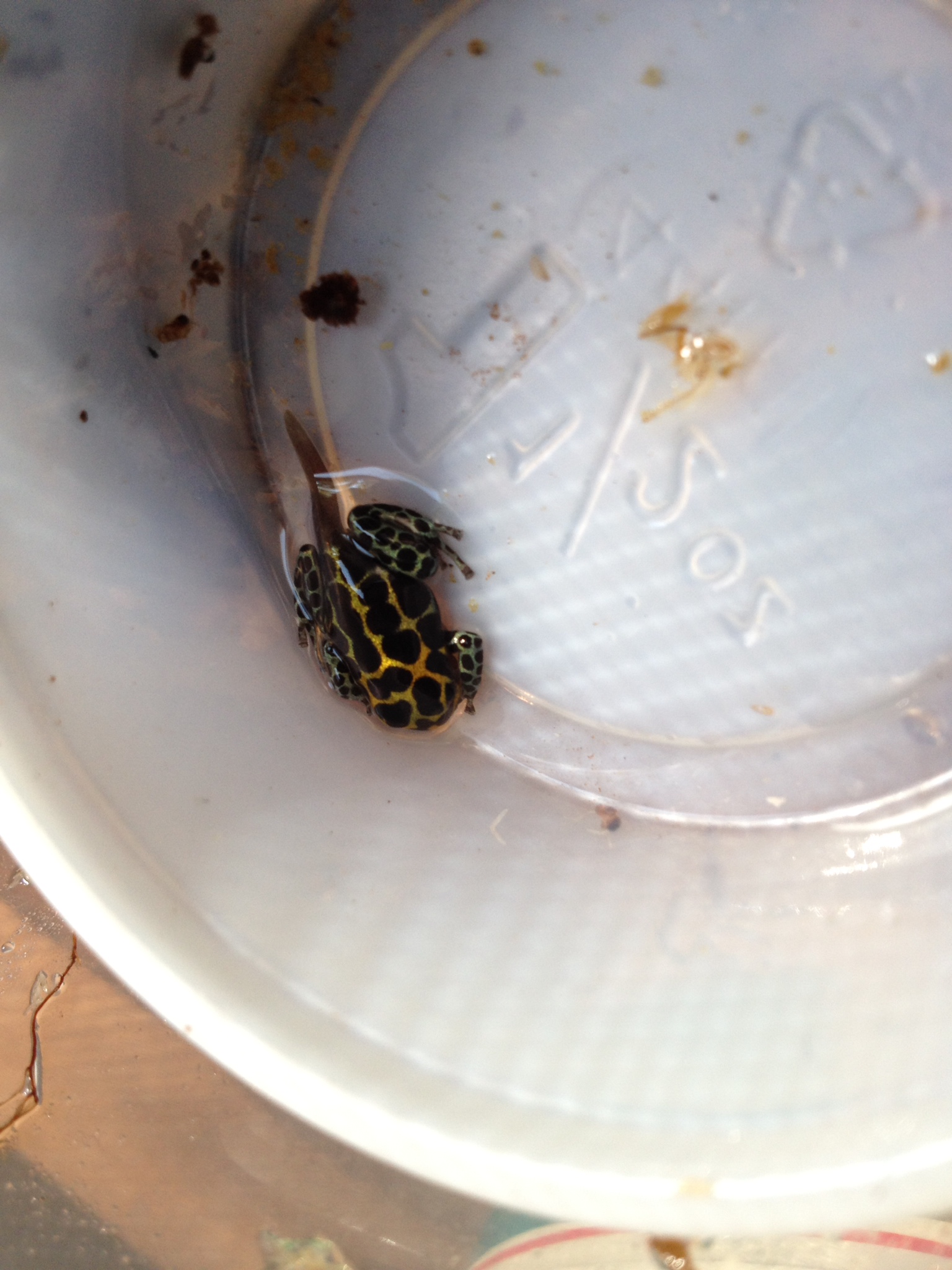 This little froglet started to freak out when I took the lid off and she was acting very dramatic clinging on the side of the cup. May have a new drama queen!