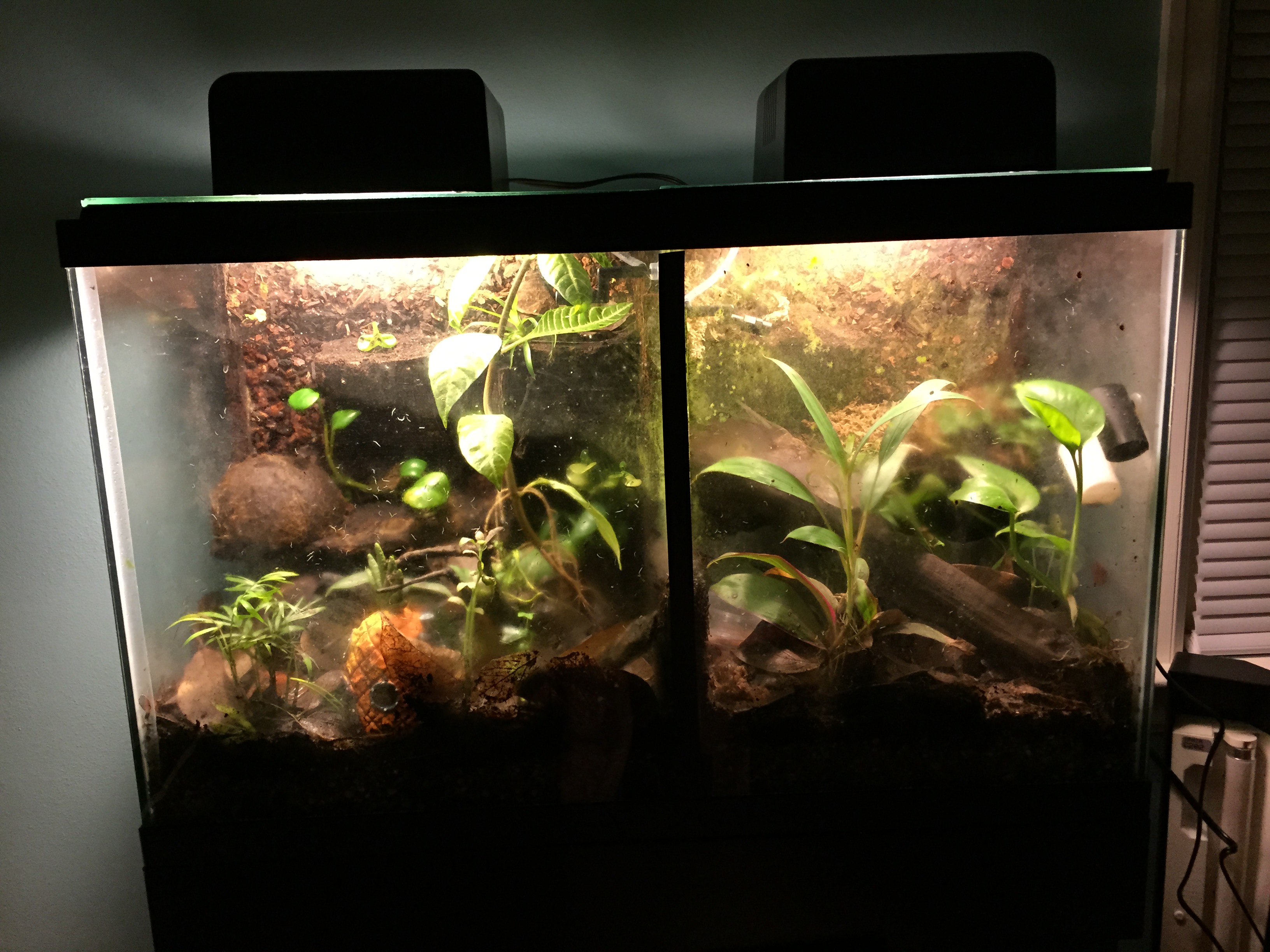 My brother & my grandparents in-law each got me a light fixture for my split tank! Oh what a difference it makes! I have been having issues with each of my 2 light fixtures for that tank going out, so it was a much needed present! It looks great and I love how it looks with the 2 individual lights instead of 1 light.