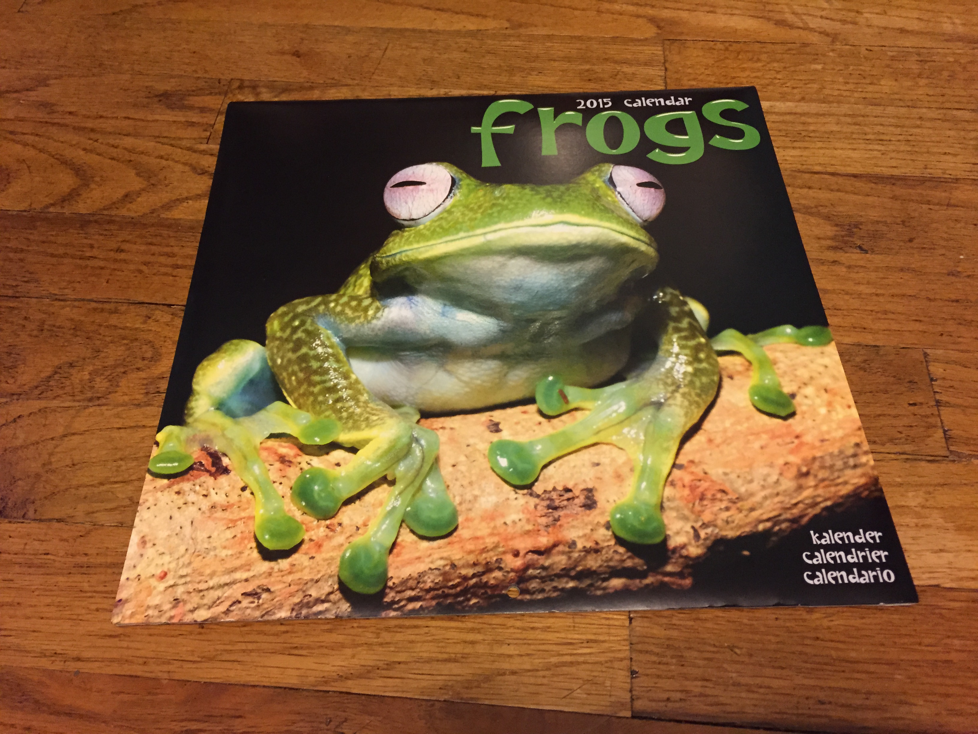 My parents in-law got me a frog calendar as well! This one will look great in the frog room.