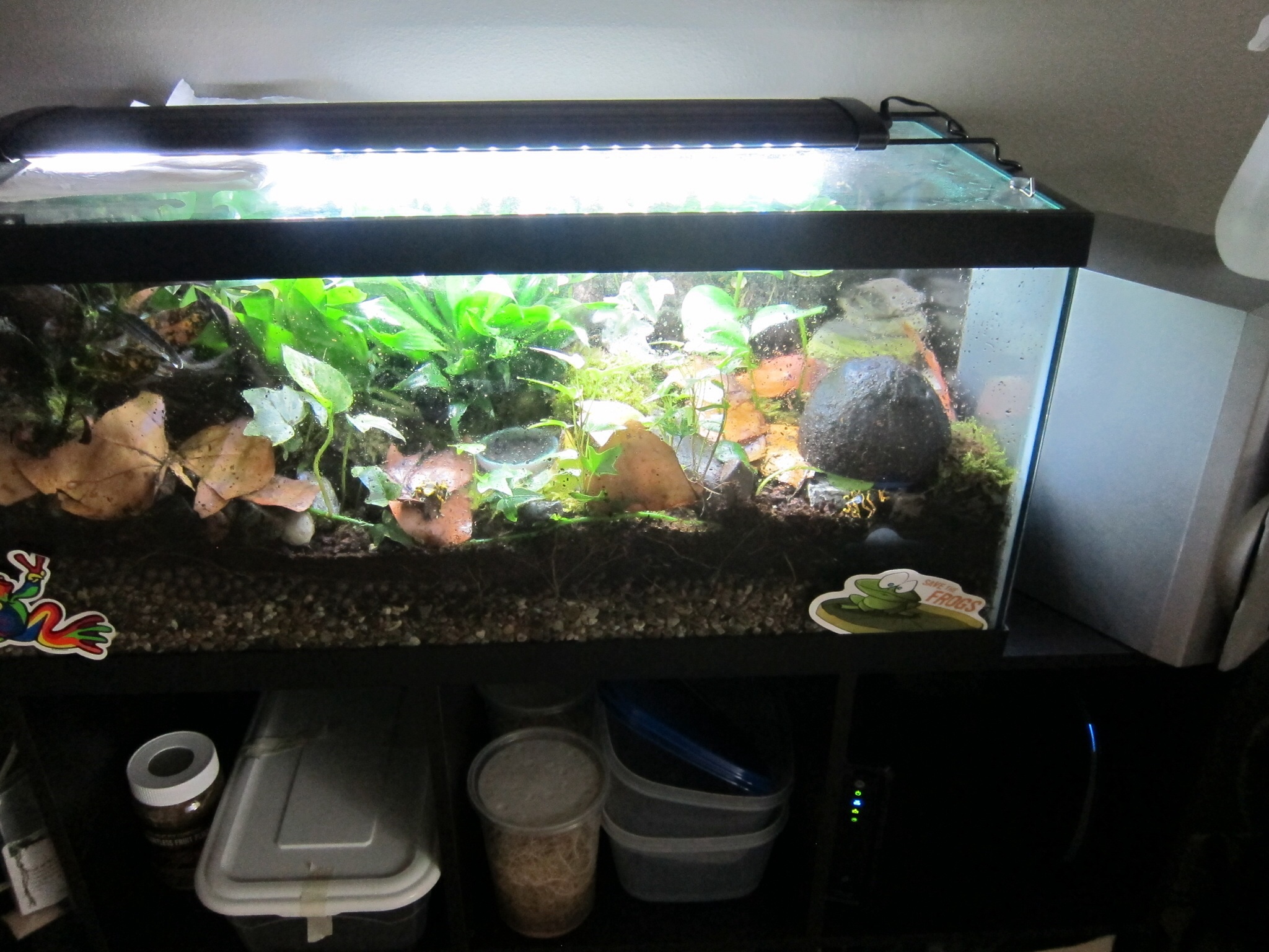 It seems so long ago that a friend of mine from good ole’ Student Union Board (SUB) was getting rid of his poison dart frogs & tank and I was finding out how cool they were. I didn’t end up getting his tank, however I did fall in love with them. After I had gotten out of college and just started my first job, we moved into an apartment and had the perfect spot on top of our bookshelf for a tank. I set up my first tank on my poor college student budget and now almost 4 years later have some tips to share!