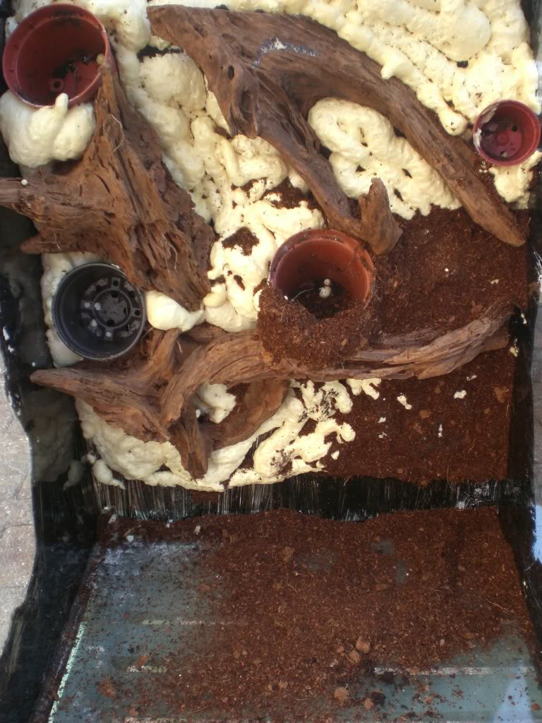 1. I’ve seen Great Stuff used for terrariums before, but not gorilla glue/substrate. Mostly because I’ve always kept bearded dragons and they’re no good with loose particle substrate. Lovely set ups!