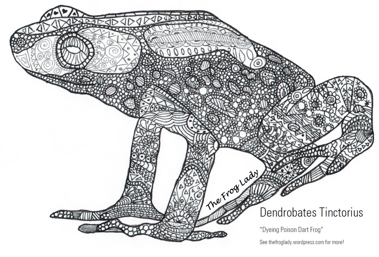 It turned out pretty good! I had intended on it to be a coloring page which is fun for kids & adults alike, but it turned out pretty cool by itself! If you know anyone who would like to color it, feel free to print it off! Please email me a copy or post it to “The Frog Lady” facebook page of the finished pieces, as I would love to see them! Stay tuned, more pieces to follow!