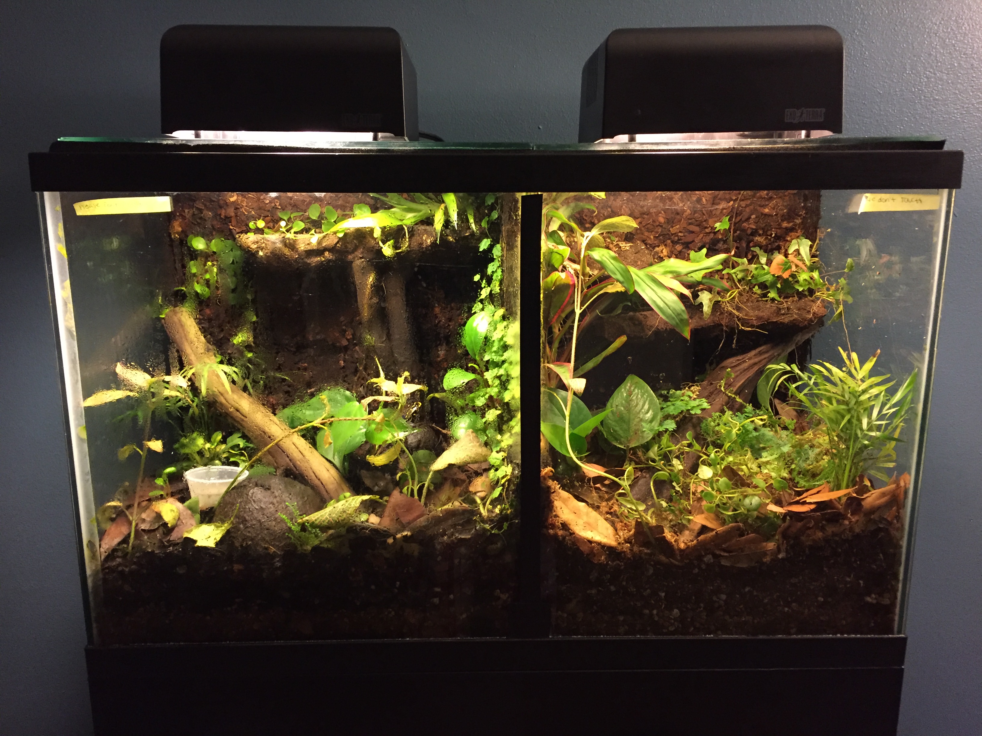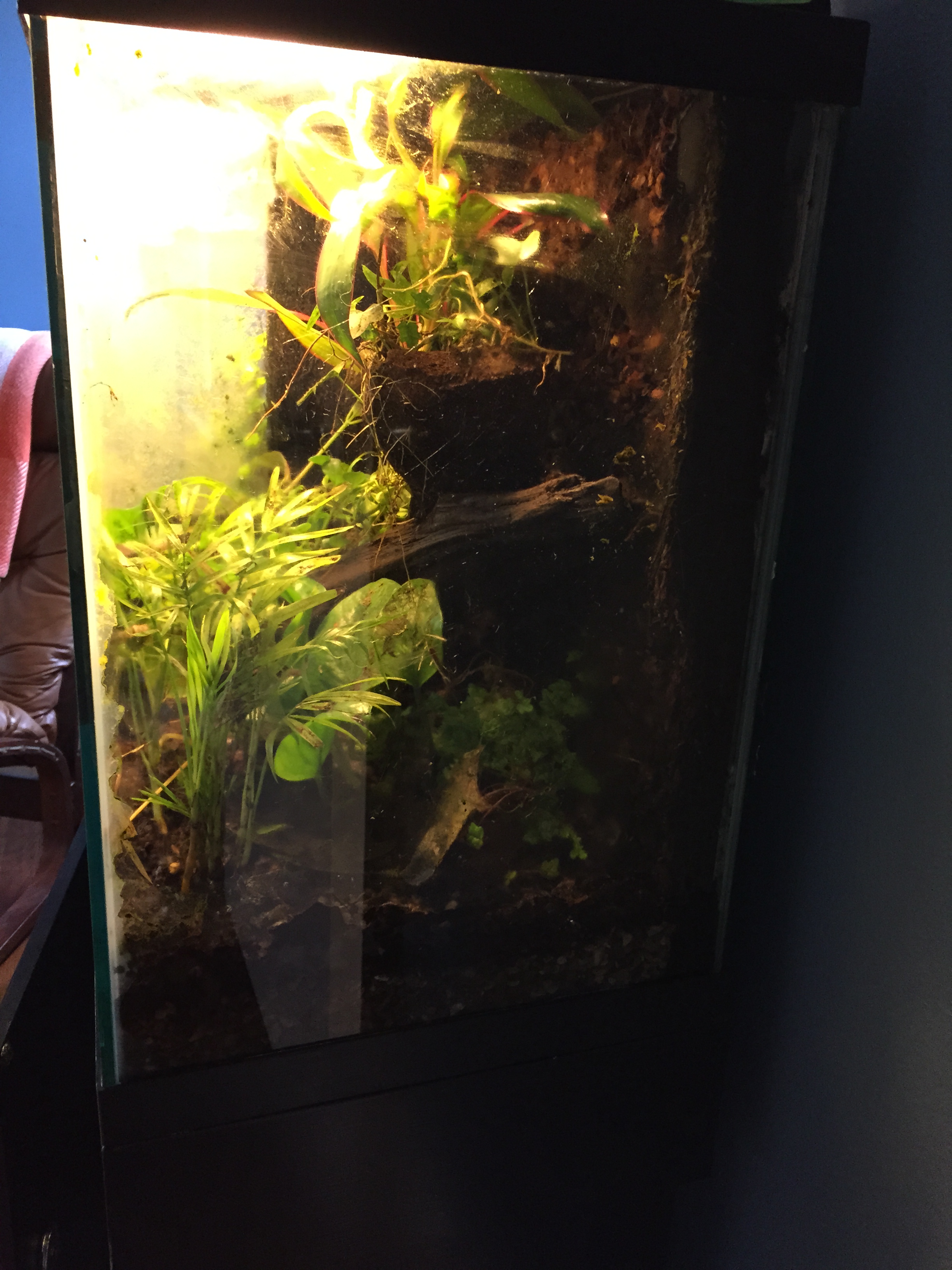 My exciting news is that I have finally finished making all of the changes to my split tank.  I have changed out the substrate and cleaned all plants.  The plants have been going crazy for the last 6+ months without any occupants to trample them.