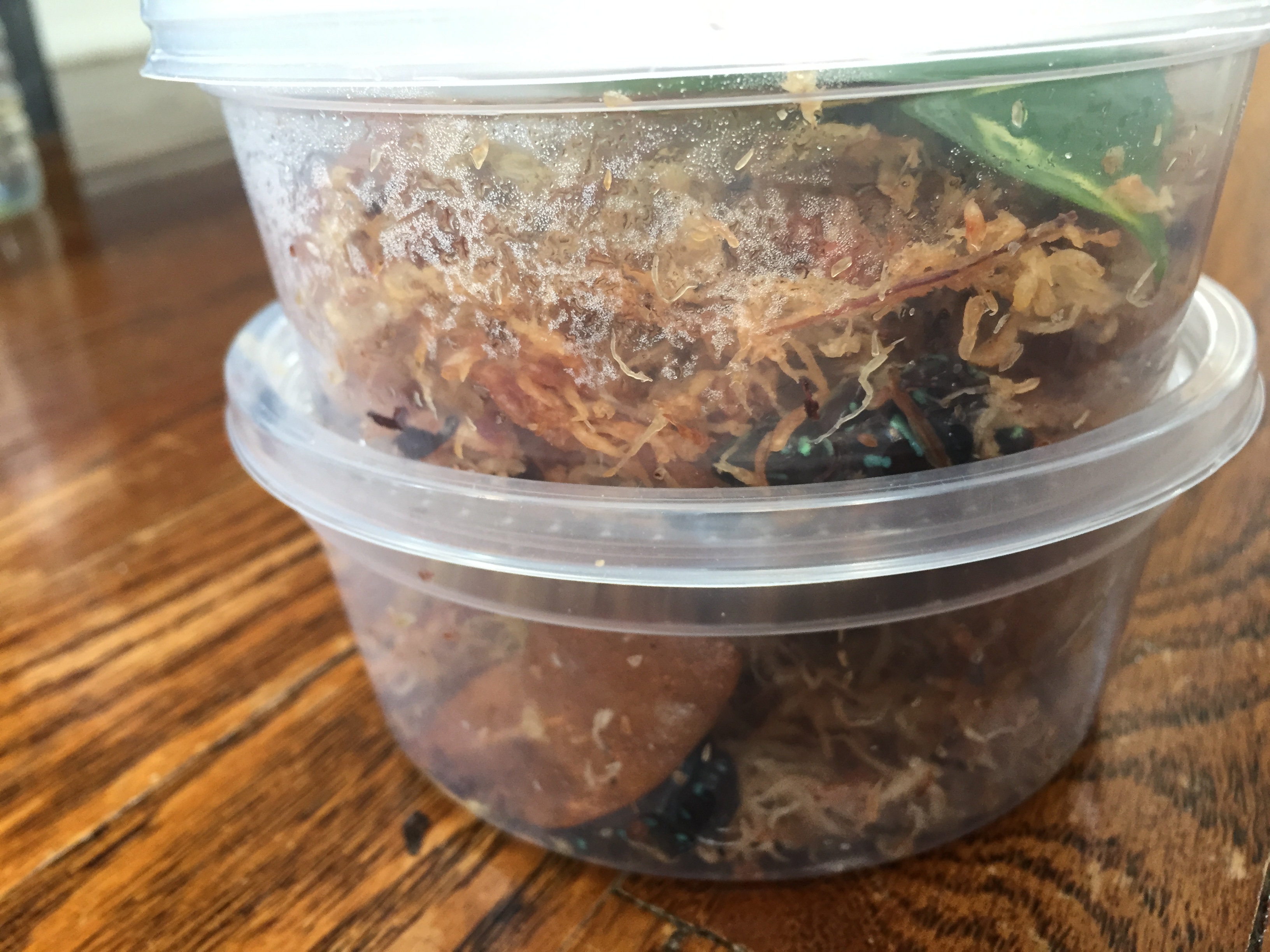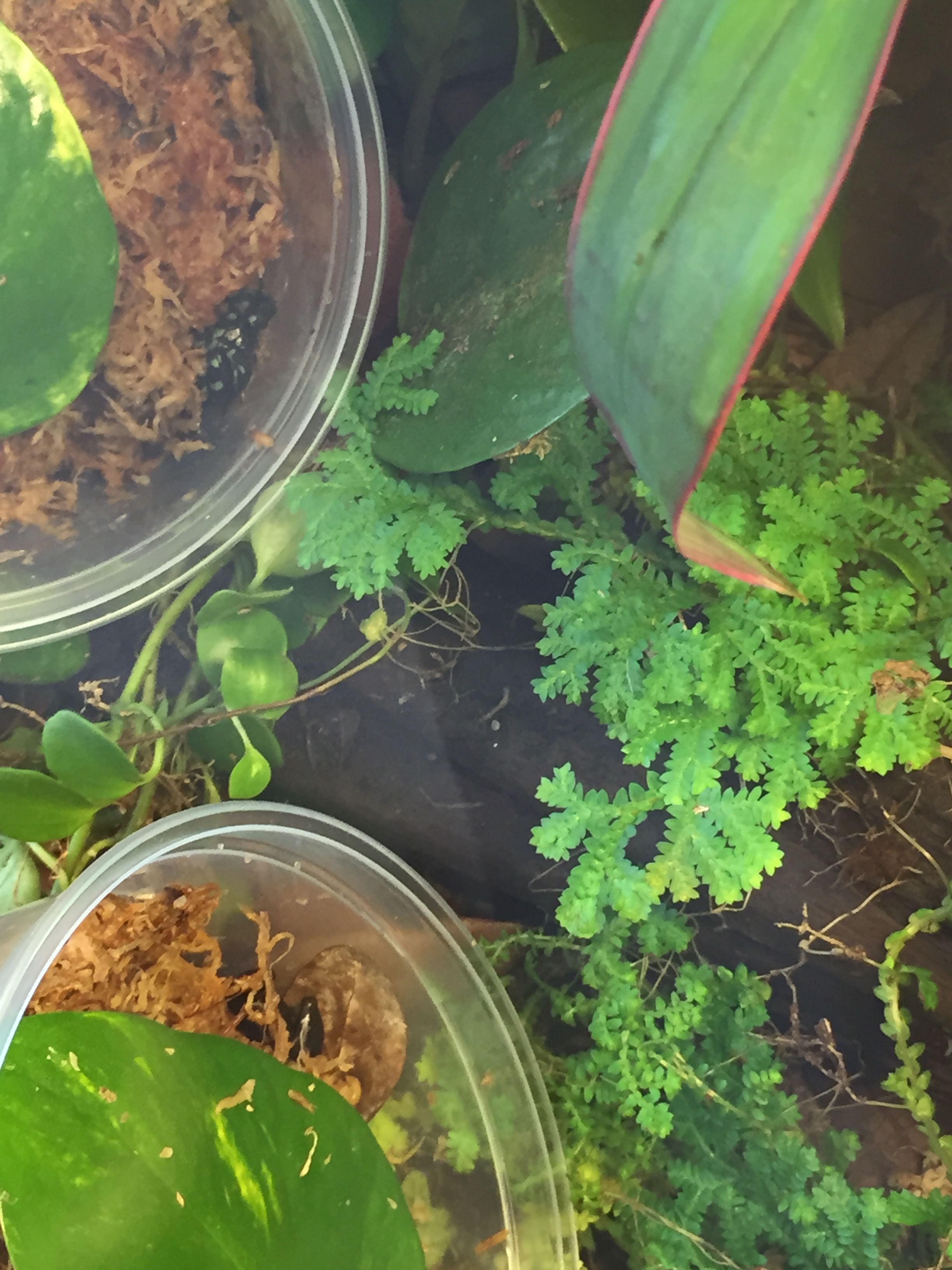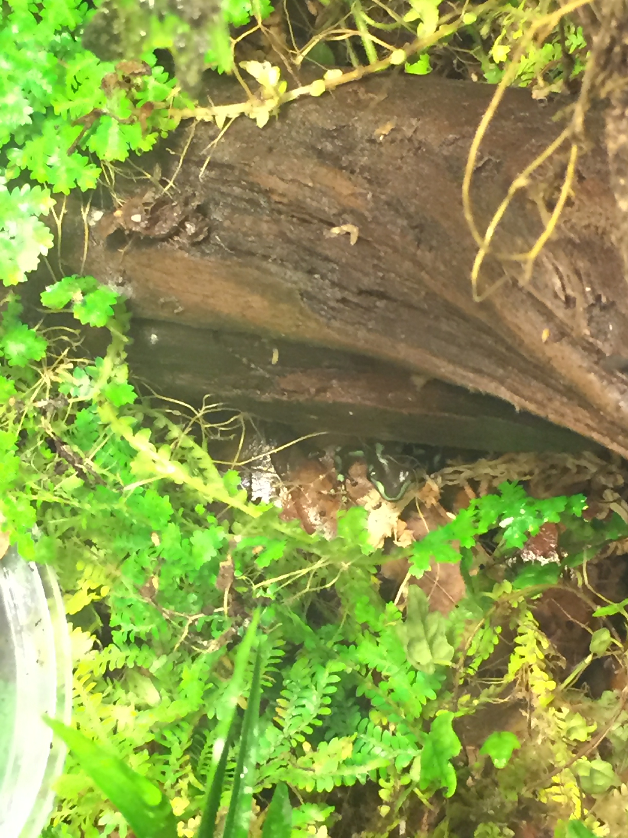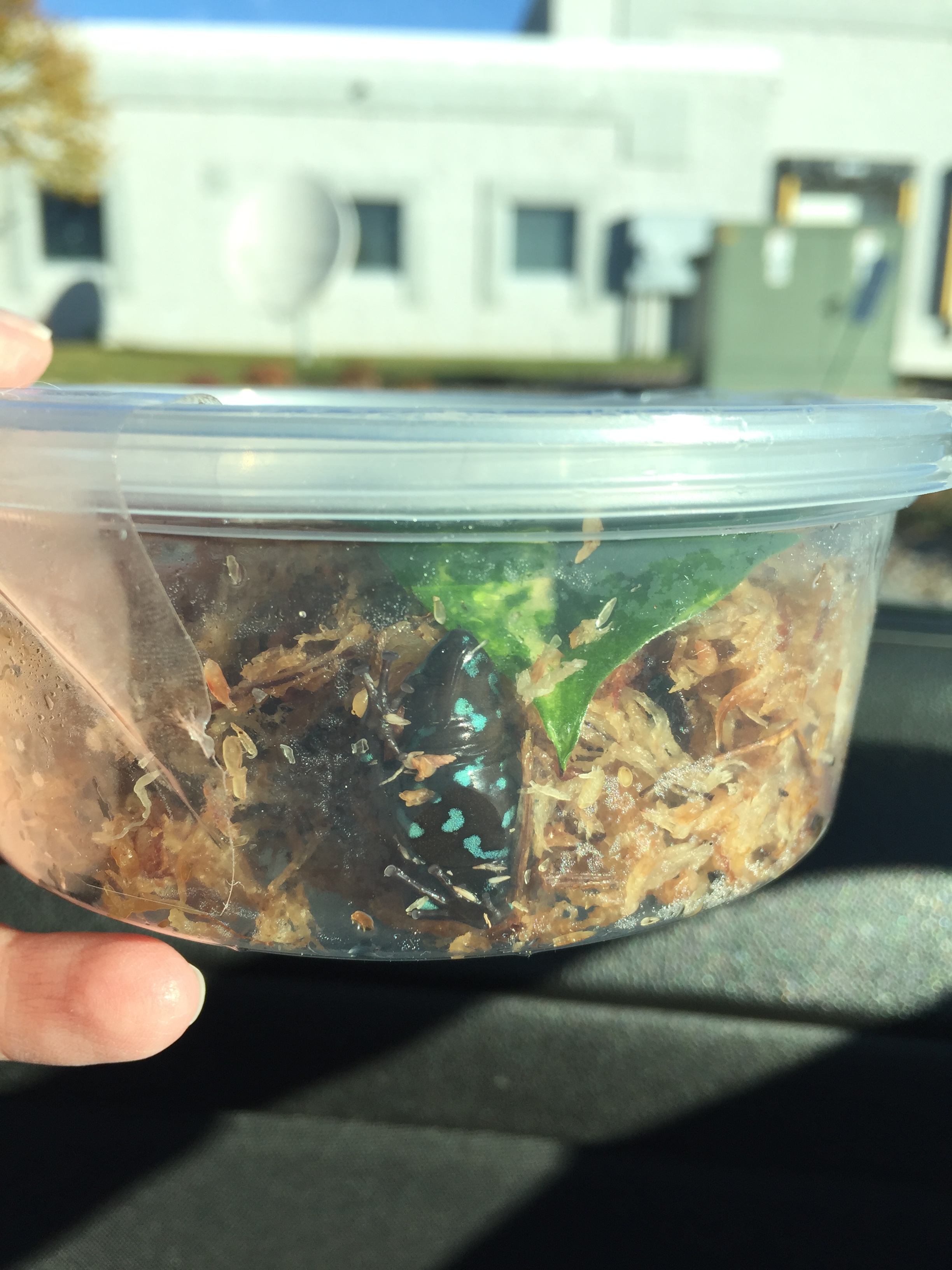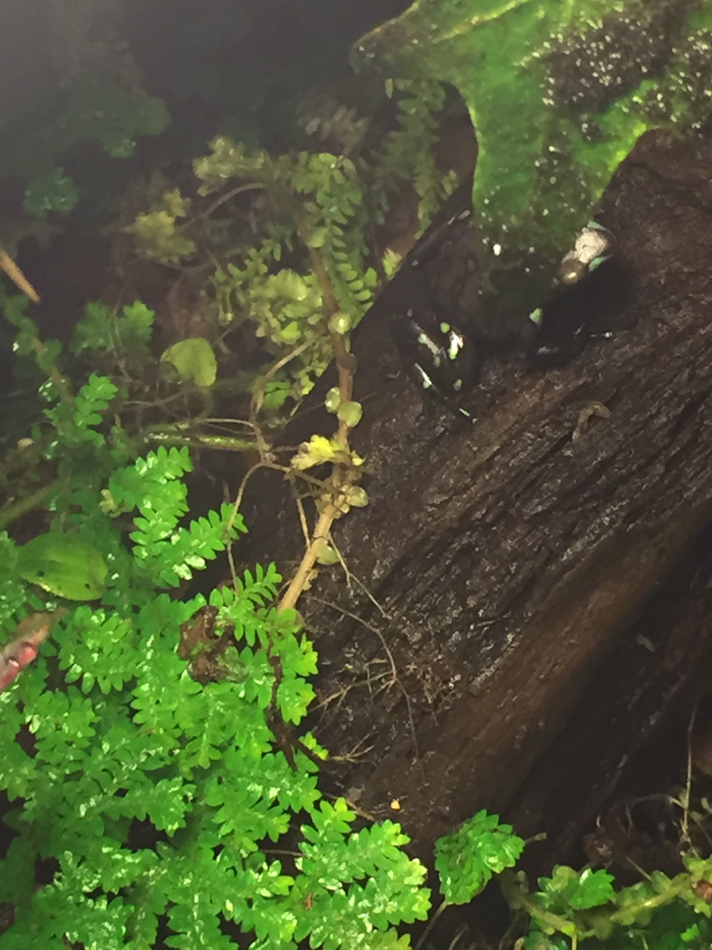 I have also changed from my original plan of splitting the 2.2 of Tarapotos and have instead decided to redo their tank over the winter and put some new occupants in the split tank 😀  AND they arrived yesterday!  So here are a couple photos of them.  I haven’t seen much of them as they are still getting adjusted, but they are adorable.  I received a probable pair of Dendrobates “Auratus” Camouflage from a friend in Florida as part of a raffle!