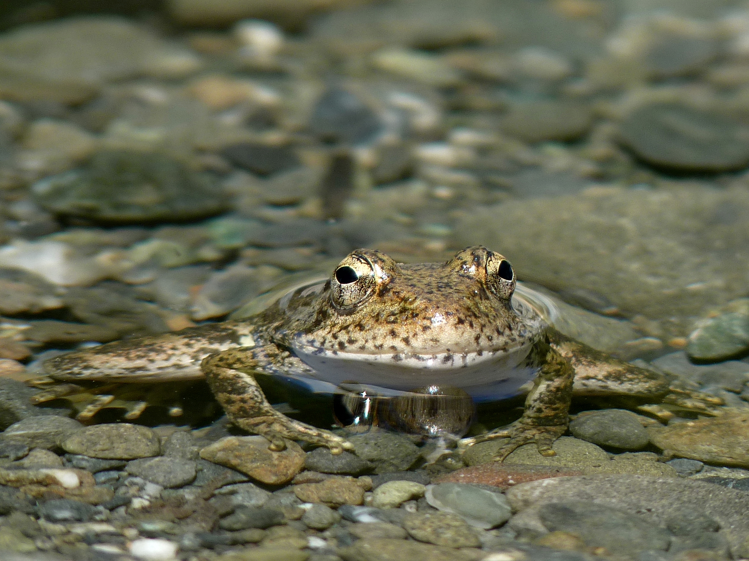 These frogs were originally thought to hibernate all winter in mud under water, however there is evidence that they move around under the ice in winter. The call of the columbia spotted frog is a clucking noise and sounds like the clicking of your tongue on the roof of your mouth. Listen to the video below and around 52 seconds you can hear the frog calling.