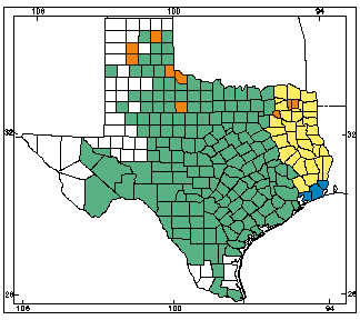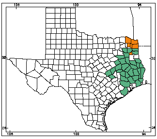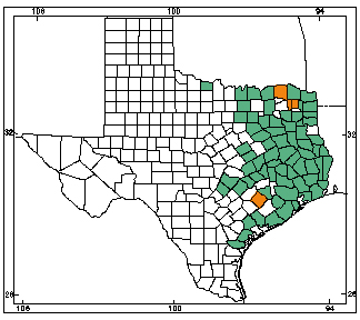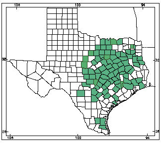 The spotted chorus frog is a small nocturnal treefrog which is typically grey or olive green in color with green mottling pattern that can reach up to 1.25″ in length. They are typically found in grasslands and prairies. In Texas, they are found in a wide band from north to south, excluding the far east and far west of the state.