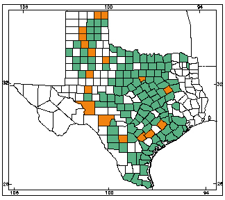 The northern Cricket frog measures an average of 1.5″ in length with the females being slightly larger. These frogs can jump a surprisingly long way (5-6′) for their small size. They can range a combination of black, yellow orange or red on a base of brown or green. They may be found near permanent water sources like slow moving streams, margins of lakes and ponds or around marshy areas. It can be found throughout most of the state, except the western panhandle and extreme western Trans-Pecos.