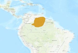 The Dendrobates leucomelas is a brightly colored poison dart frog originally found in very humid or wet conditions in tropical rain forests located within Venezuela, Columbia, Brazil & British Guyana. Typically found on wet tree trunks, roots of rain forest trees, forest floor and on rocks. It is currently listed as least concern by the IUCN due to its widespread distribution and tolerance of habitat modification.