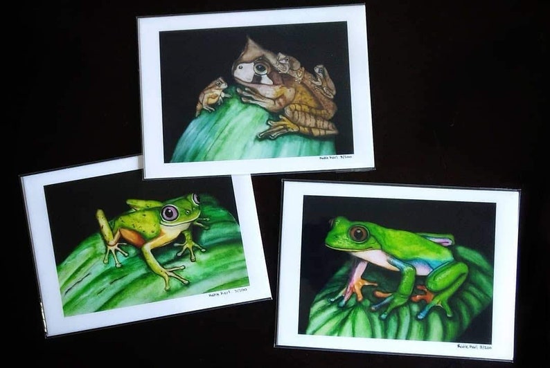 THANKS, I love frogs! I HAVE GREEN FROG EARRINGS, a T shirt with a tree frog sitting atop a pitcher plant, and a picture frame with green 3-D frogs on it. (I gave my rubber frogs to my young nephew.) I’ll show this to my son.